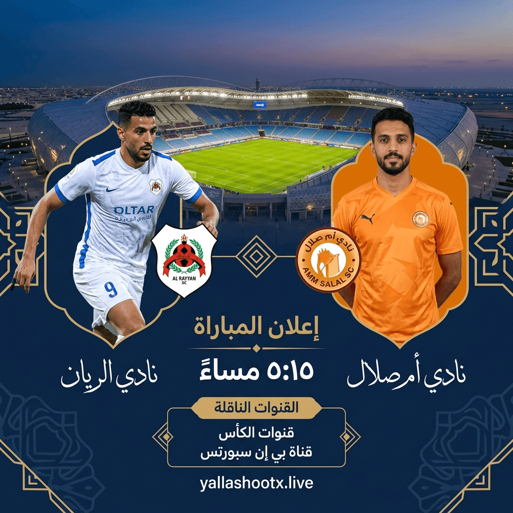 يبحث كثير من الجماهير عن موعد مباراة الريان ضد أم صلال اليوم والقنوات الناقلة، خاصة أن المواجهة تأتي بعد تأهل الفريقين من ربع نهائي كأس QSL 2025-2026. وتقام المباراة يوم السبت 28 مارس 2026، وتنطلق في تمام 5:15 مساءً بتوقيت مصر، وهو ما يوافق 6:15 مساءً بتوقيت قطر.