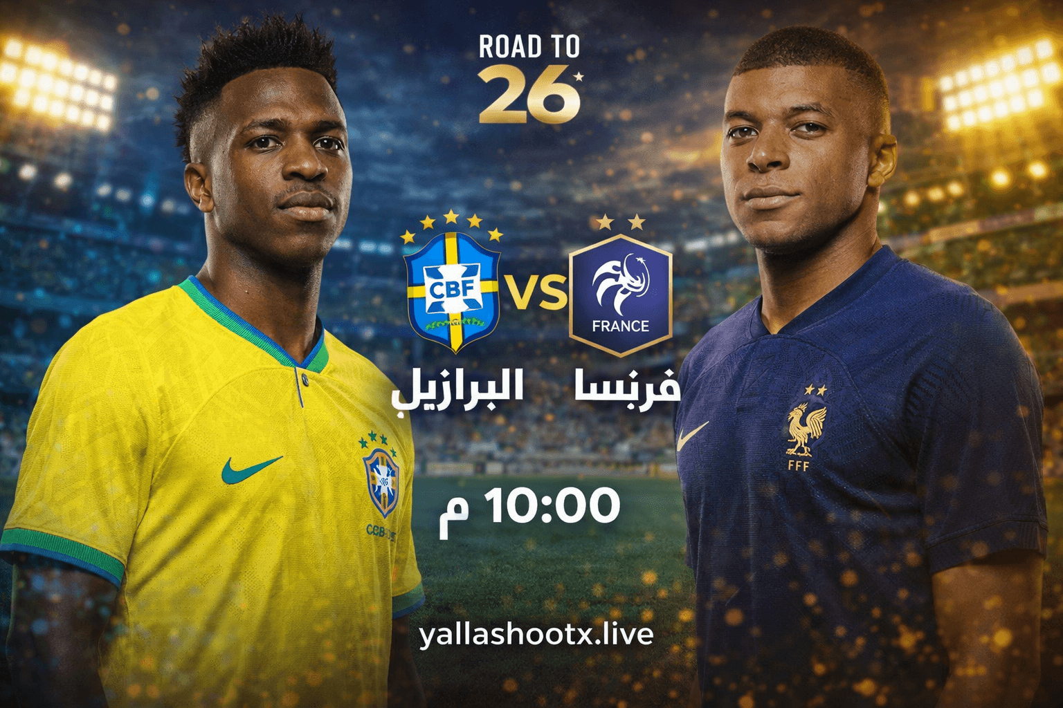 تقام مباراة البرازيل ضد فرنسا يوم الخميس 26 مارس 2026، وتنطلق في تمام الساعة 10:00 مساءً بتوقيت مصر، على ملعب جيليت ستاديوم في فوكسبورو بولاية ماساتشوستس الأمريكية، ضمن المباريات الودية الدولية في سلسلة Road to 26 التحضيرية قبل كأس العالم 2026.